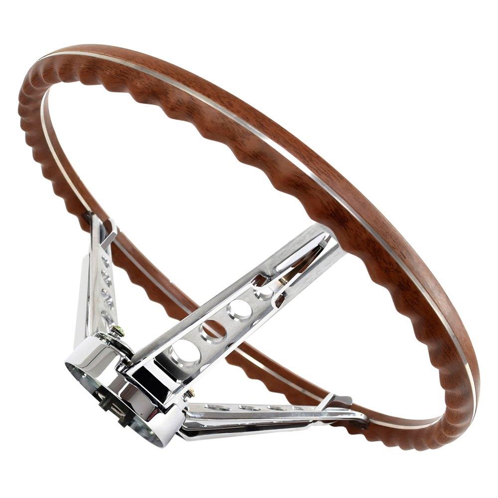 3-Spoke Deluxe Woodgrain Steering Wheel Assembly by ACP®. For many years ACP has been in the automobile industry and has grown to become one of the leading manufacturer/distributors of Classic Mustangs. Through the years they’ve expanded and developed thousands of products for additional vehicles such as Bronco, Comet, Falcon/Ranchero, Fairlane, Thunderbird, Camaro, Chevelle, etc. Company has always invested 100% of their resources into each and every product they offer and they control the entire manufacturing process. They start with new and accurate tooling along with the purest raw material to ensure a quality product with superior fit and craftsmanship.