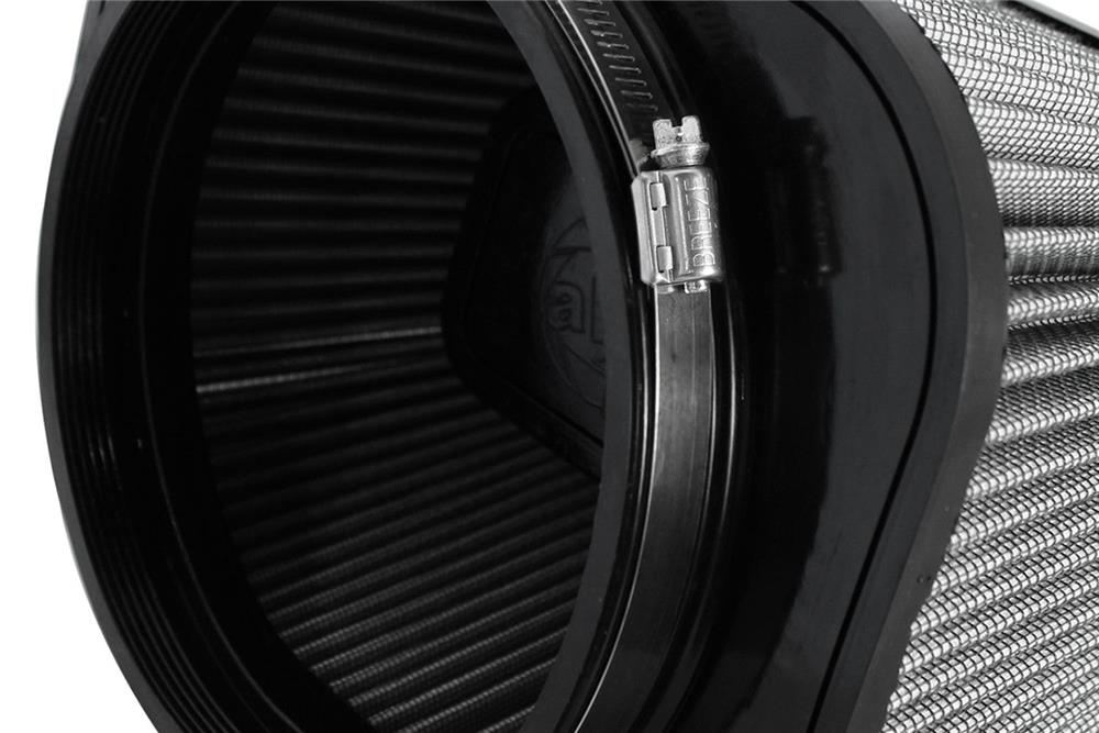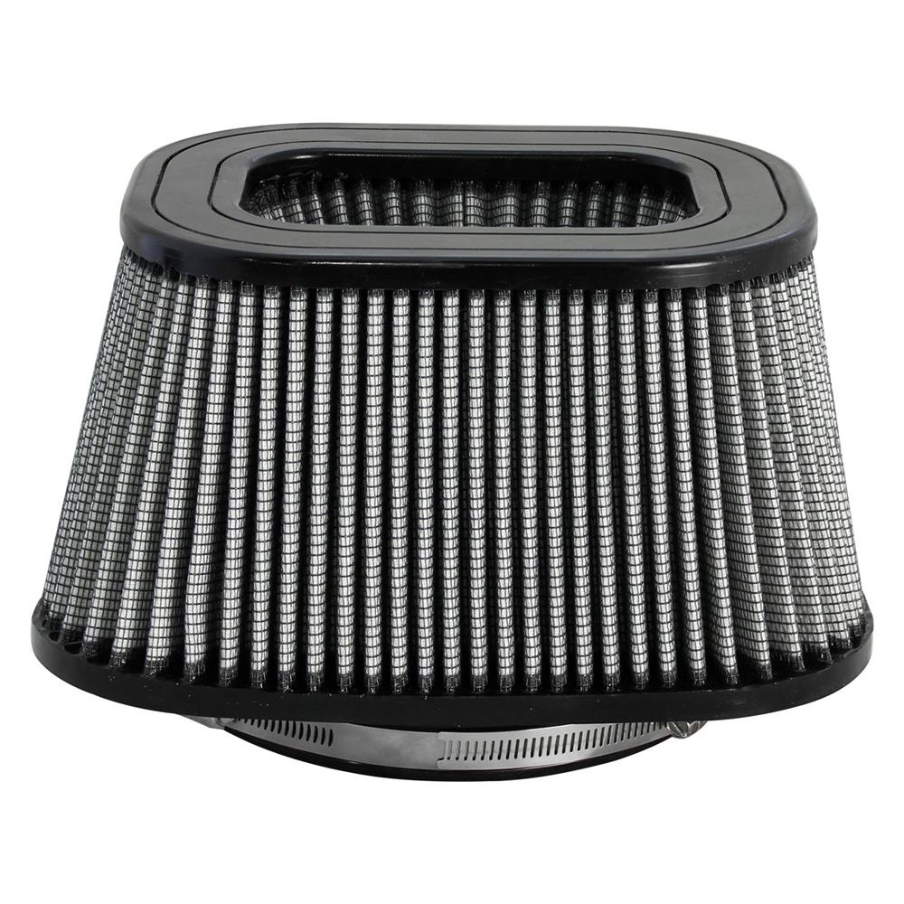 Magnum Flow® Pro Dry S Rectangular Tapered Gray Air Filter by aFe®. With three layers of progressively finer mesh synthetic media between 100% polyurethane top and base, this high flow, “oil-free” conical performance filter provides maximum convenience and easy maintenance with excellent airflow. Washable and reusable for multiple cleanings, the tall open evenly spaced pleats provide excellent dust holding capacity for longer service cycle between cleanings. Pliable polyurethane flange insures tight, no leak seal over the life of the filter.