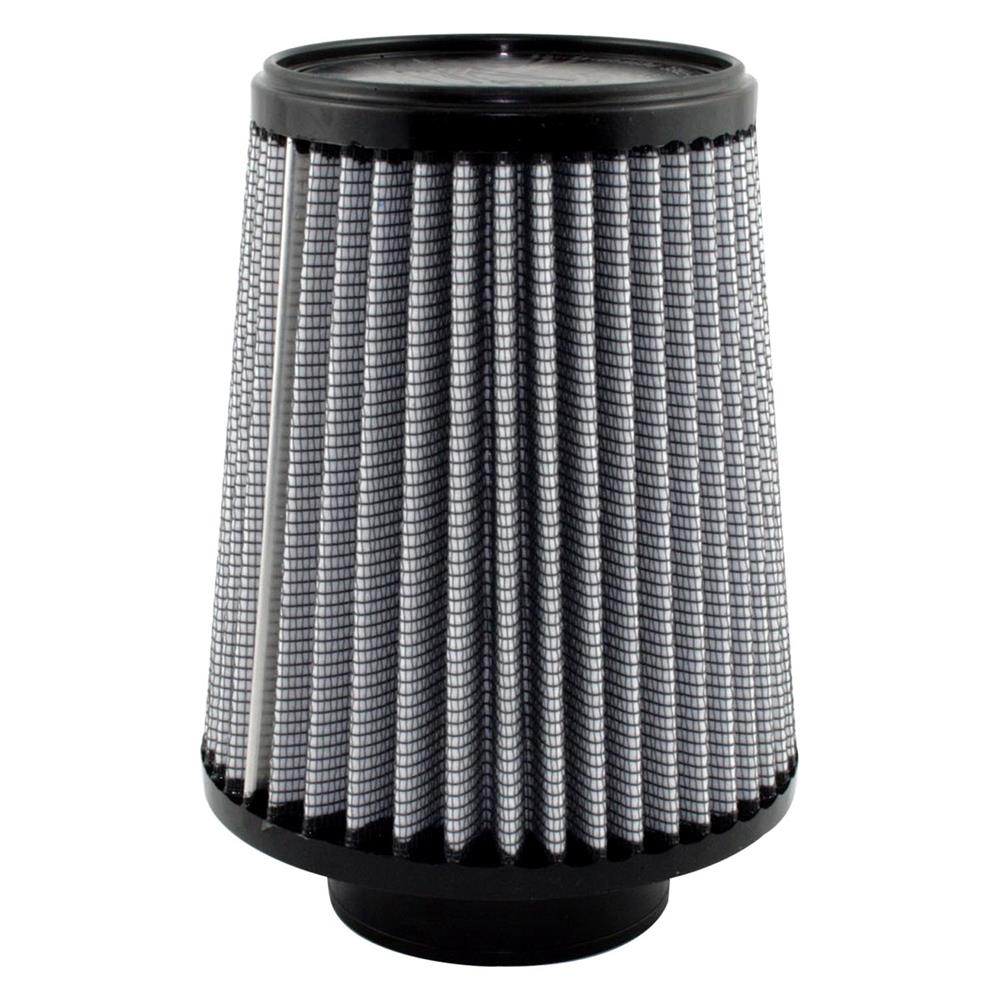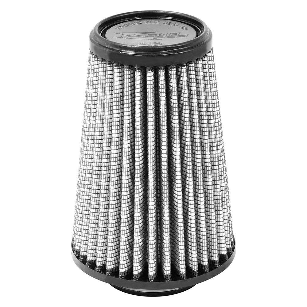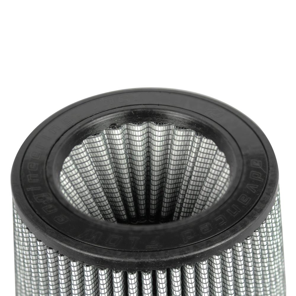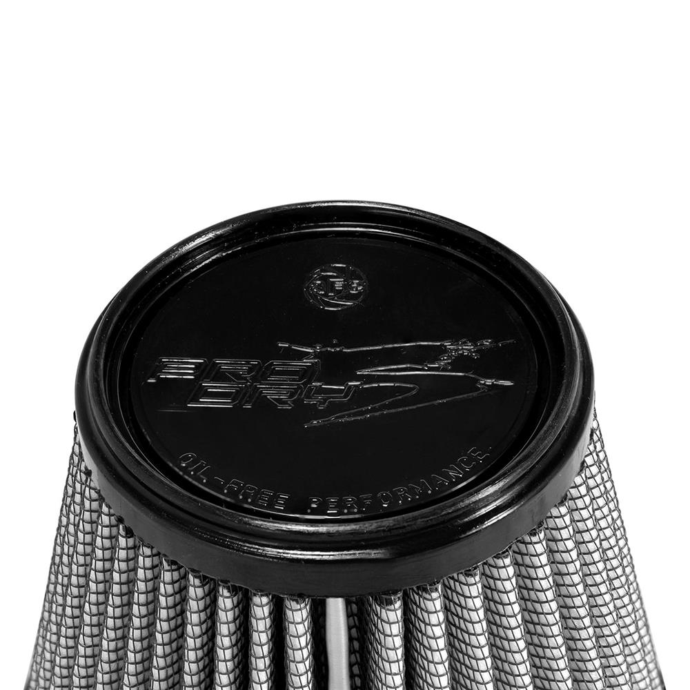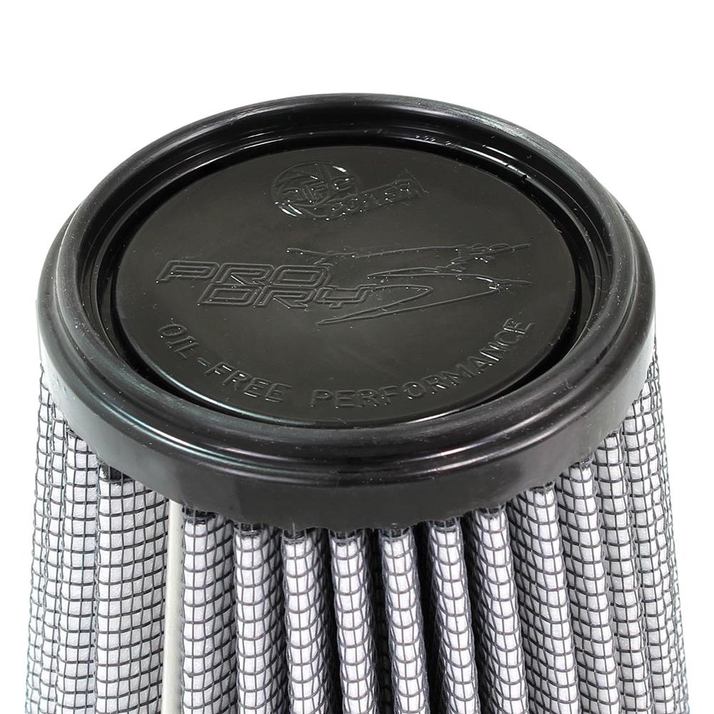 Magnum Flow® Pro Dry S Round Tapered Gray Air Filter by aFe®. This high flow Pro DRY S air filters are constructed with 100% polyurethane on all sides and will out flow the stock paper filters for improved performance. Layers of progressively finer synthetic media provides maximum convenience and can be cleaned with soap and water. Washable and reusable for multiple cleaning cycles, the tall, open and evenly spaced filter pleats provide excellent dust holding capacity for longer service cycle between cleanings. An integrated urethane bump seal insures a tight, leak-free seal over the life of the filter. The aFe filter system increased air flow 25% over the factory air filter set increasing horsepower, torque and improving throttle response.