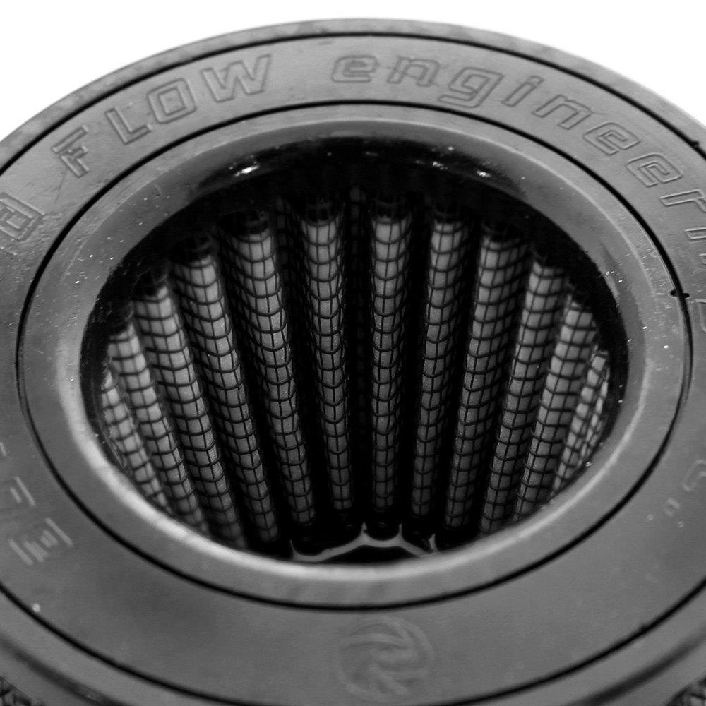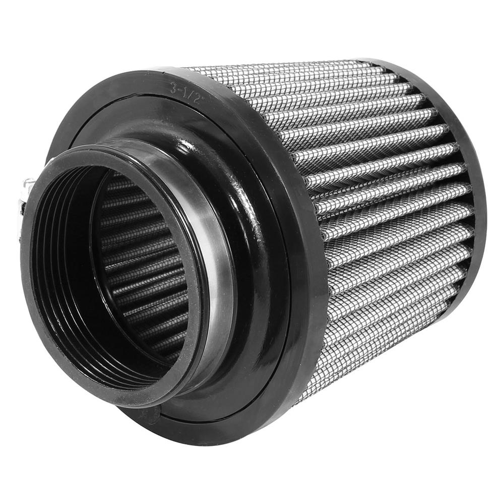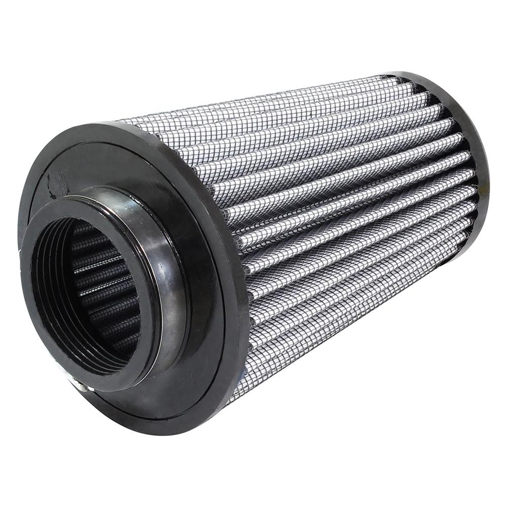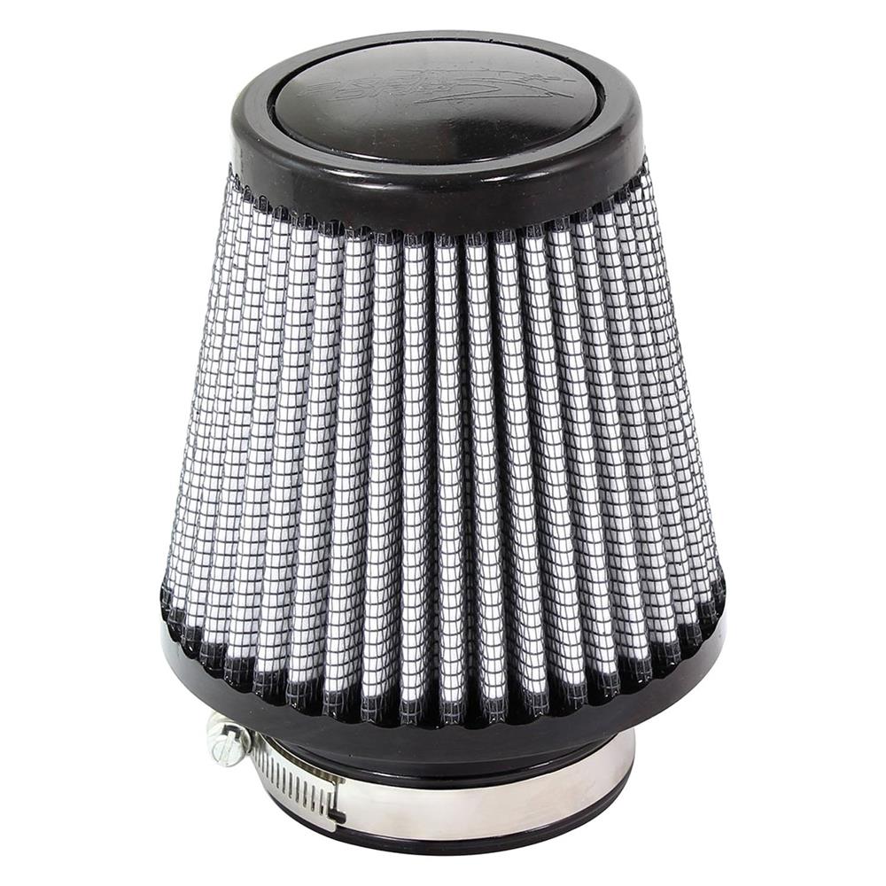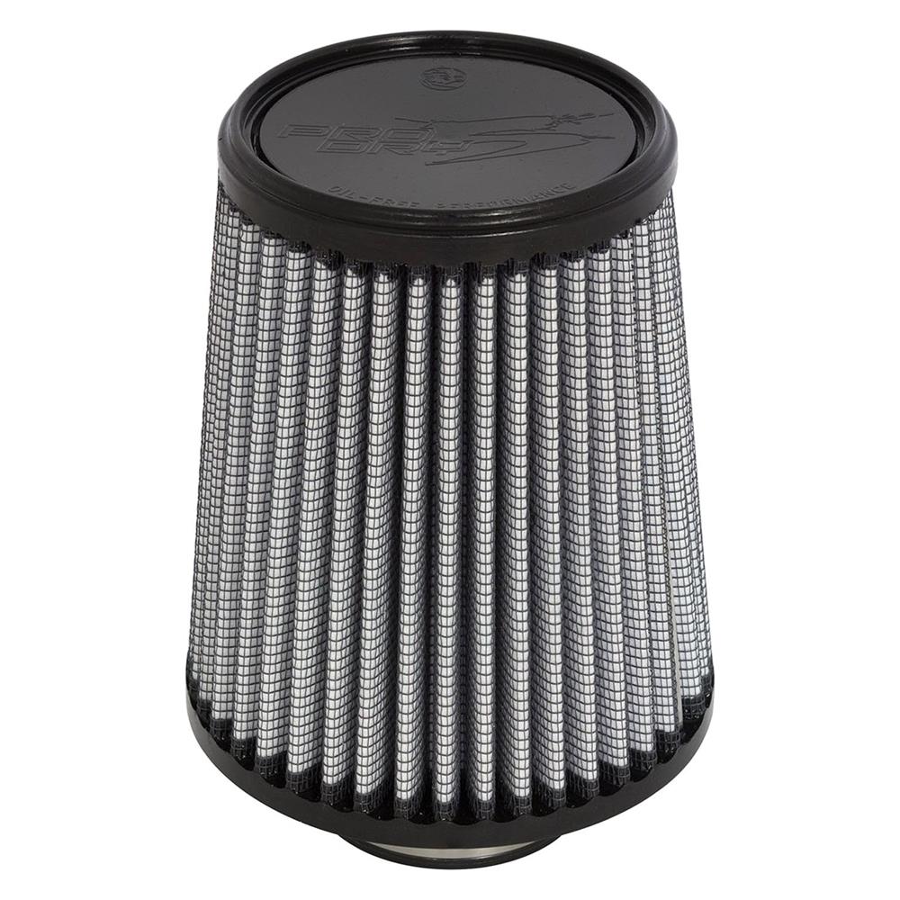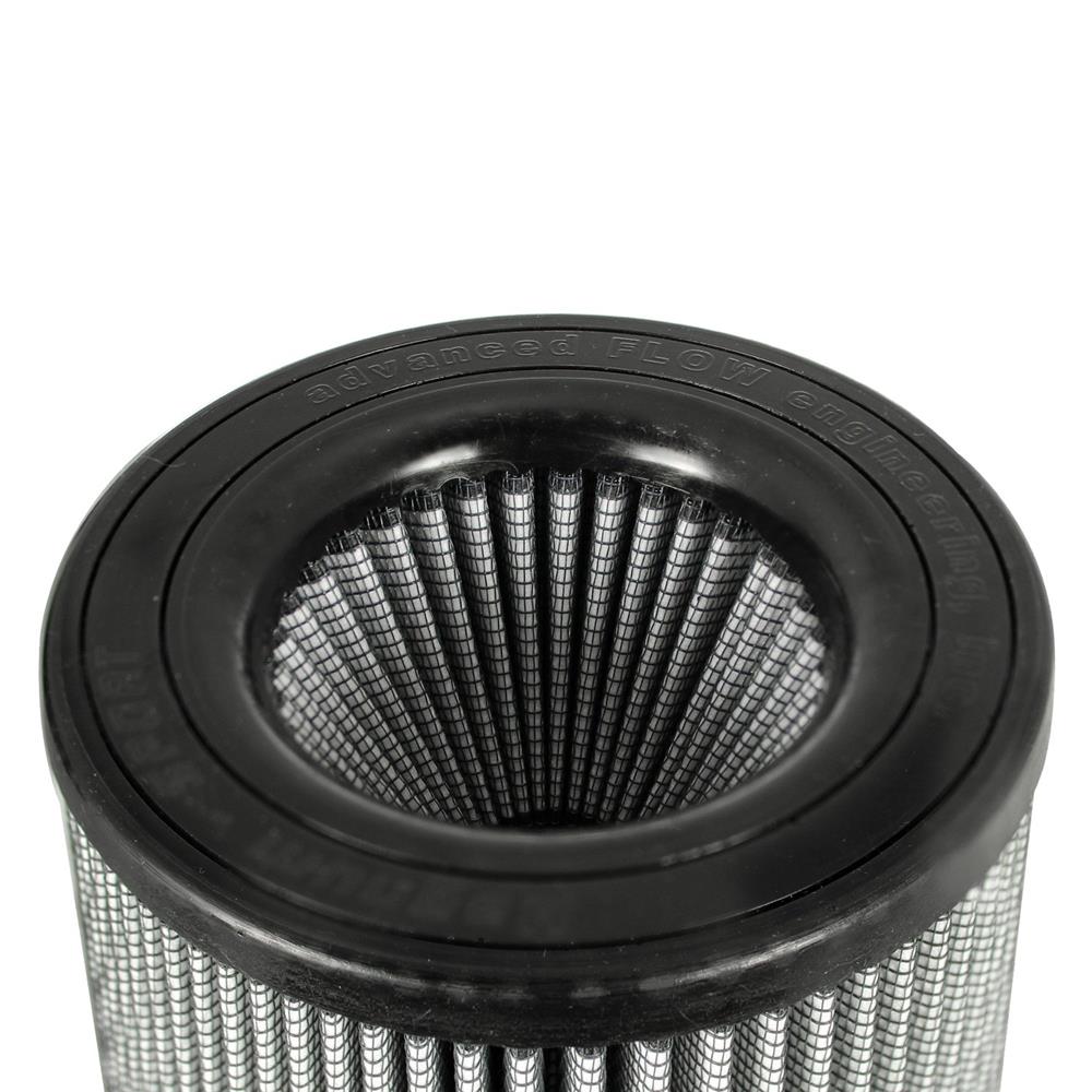Magnum Flow® Pro Dry S Round Tapered Gray Air Filter by aFe®. This high flow Pro DRY S air filters are constructed with 100% polyurethane on all sides and will out flow the stock paper filters for improved performance. Layers of progressively finer synthetic media provides maximum convenience and can be cleaned with soap and water. Washable and reusable for multiple cleaning cycles, the tall, open and evenly spaced filter pleats provide excellent dust holding capacity for longer service cycle between cleanings. An integrated urethane bump seal insures a tight, leak-free seal over the life of the filter. The aFe filter system increased air flow 25% over the factory air filter set increasing horsepower, torque and improving throttle response.
