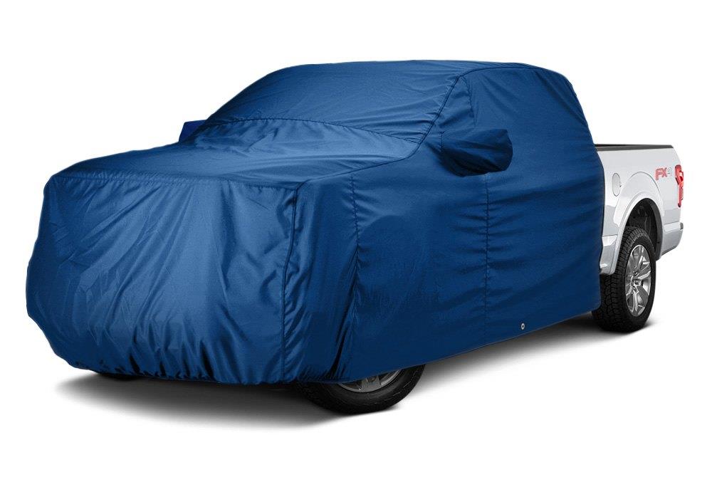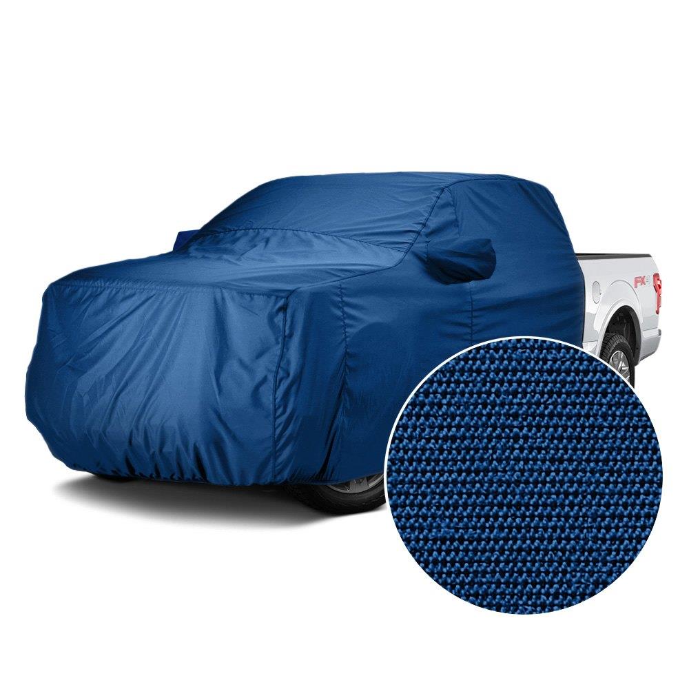 Sunbrella™ Custom Cab Area Cover by Covercraft®. If your pickup has a bedliner, tonneau cover, cap, or commercial chassis box with a non-painted finish or irregular shape, this cab area cover protects the cab’s paint and your vehicle’s interior from UV damage. The Sunbrella outdoor cab cover features acrylic fiber construction and provides Covercraft’s highest possible level of UV sun protection and breathability. Also offers strong protection against acid rain, bird droppings, and tree sap. It’s designed for climates that are warm all-year round and does not feature multi-layer construction that fully keeps snow and wet dirt out.