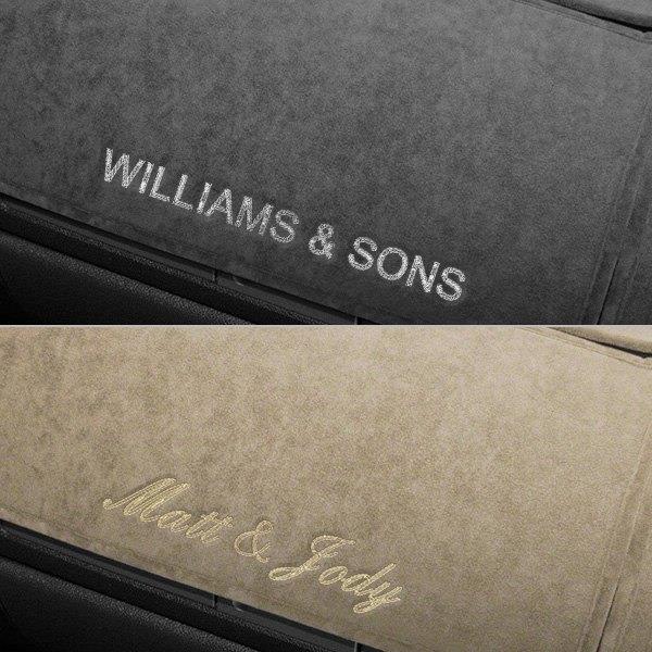 Suede Custom Dash Cover by Coverking®. Exclusive by nature, this Dash Cover is a fine alternative to genuine suede leather. Recommended for use on luxury vehicles. Various material colors and custom embroidered logos or messages will personalize your interior making it look really stylish.