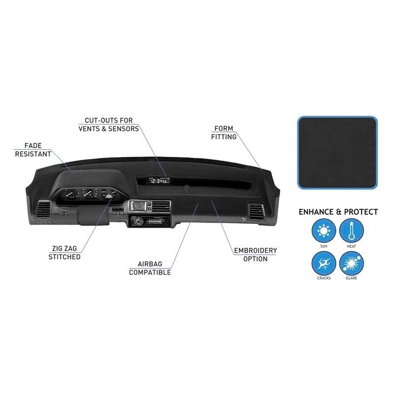 Made from a luxurious polyester material with a smooth velour finish, Coverking dash covers are fade-resistant and will absorb the light from the sun, thus reducing the heat and glare impairing your vision.