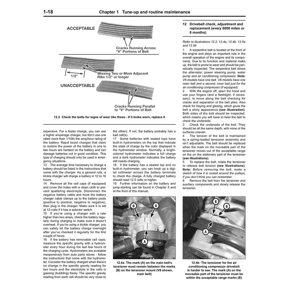 Routine maintenance, tune-up procedures, engine repair, cooling and heating, air conditioning, fuel and exhaust, emissions control, ignition, brakes, suspension and steering, electrical systems, wiring diagrams.