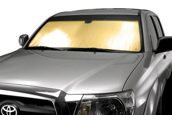 Custom Auto Shade™ by Intro-Tech®. This unique custom-fit thermal shade provides protection against heat and UV rays at the same time. The multi-layered construction can reduce interior temperatures as much as 40°F. Store it rolled up and fastened with the attached hook and loop fastener.
