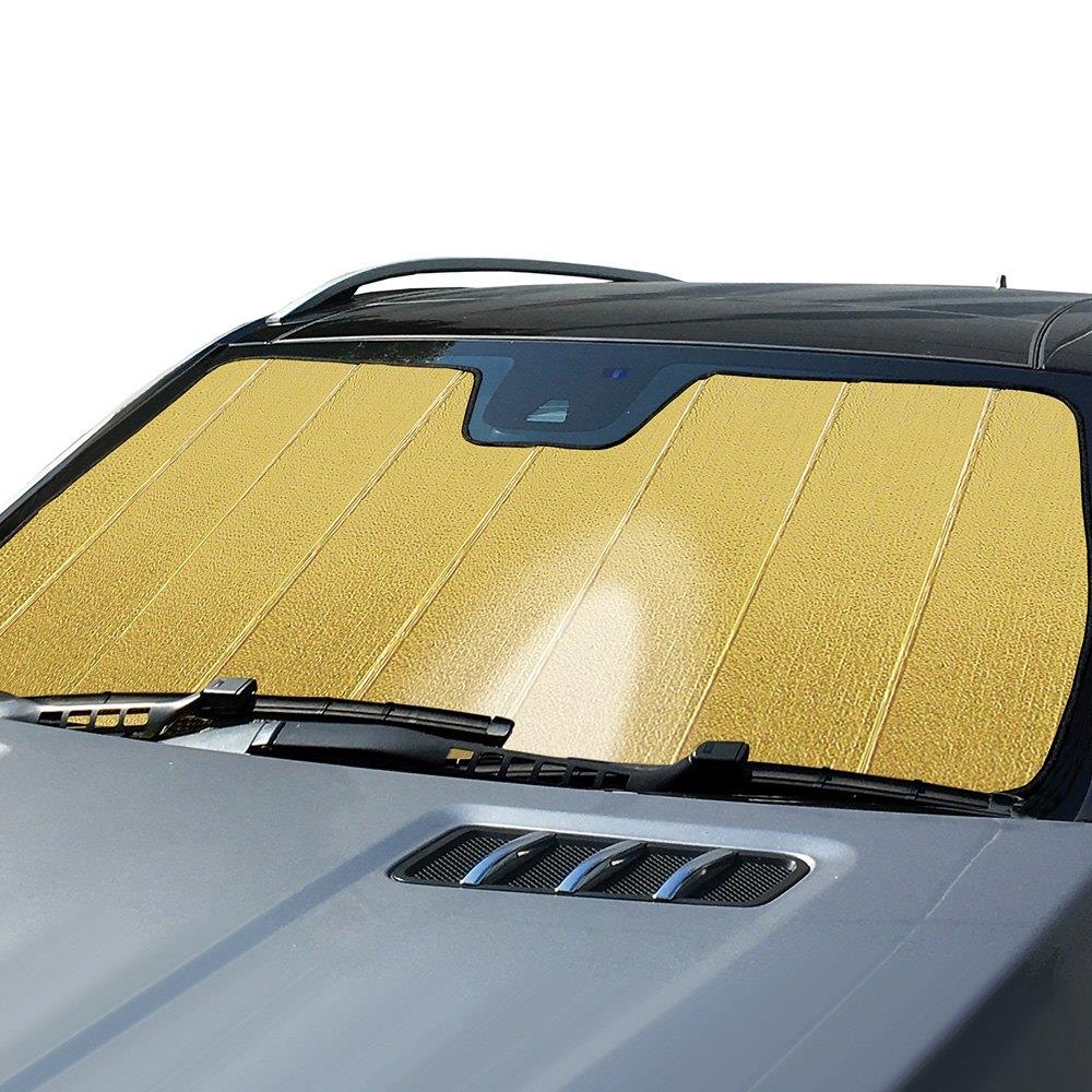 Keep your steering wheel, gearshift, and seats cool and prevent cracked and fading dashboards with this premium-grade sunshade from Intro-Tech.