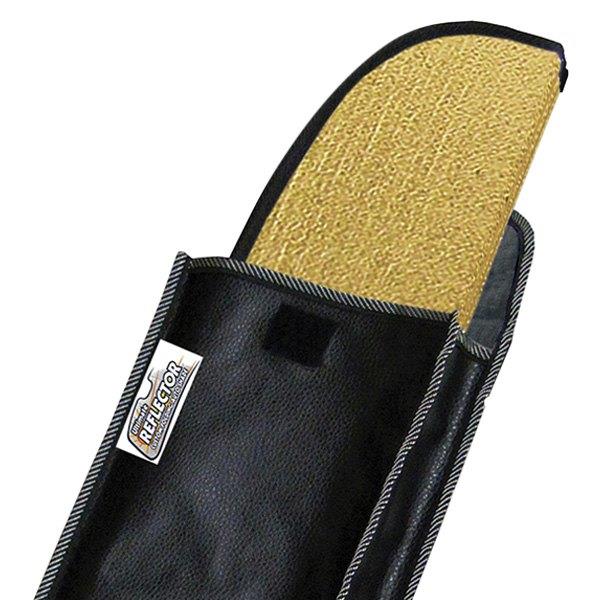 You can expect the temperature of your interior to remain as much as 40°F or more cooler when the Ultimate Reflector is used. Bonus: Keep your car warmer when parked in winter by reversing the reflector, and installing it felt-side out. It takes only a few seconds to unfold the Reflector and install it on the dash, and just as long to fold it up and put it back in the included leatherette pouch.