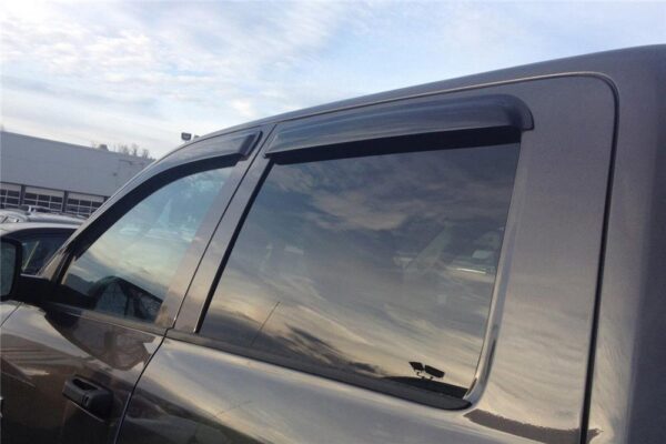 Tape-On Smoke Wind Deflectors by JKS®. Get these top-notch JKS wind deflectors to stay comfortable and dry, while looking stylish as you drive your vehicle. These wind deflectors can let fresh air in, while protecting your cabin from rain and snow. They decrease wind noise and allow interior heat to escape. This product can also customize your ride and make it look unique.