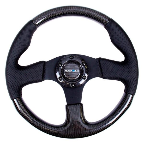 NRG Innovations® – 3-Spoke Carbon Fiber Steering Wheel with Leather Handle Bars