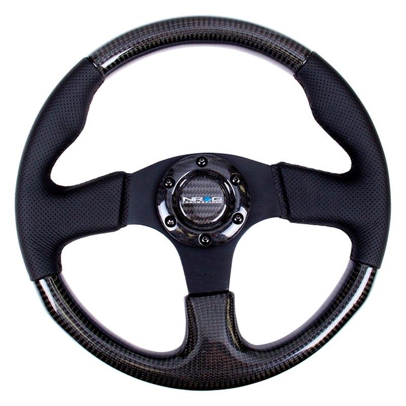 3-Spoke Carbon Fiber Steering Wheel with Leather Handle Bars by NRG Innovations®. New addition to carbon fiber series. This wheel has stitching and a wet carbon fiber plus leather handle bar. 315mm to show off its handle and durability. Whether you’re braking late to steal your rivals’ apex or cruising around town make NRG Innovations your number one choice for steering wheels.