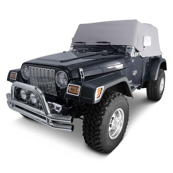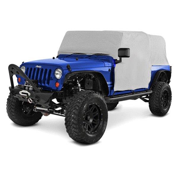 Water Resistant Cab Cover by Rugged Ridge®. When you’re not out enjoying your Jeep, protect it from dust, dirt, and light showers with this Water Resistant Vinyl Cab Cover. It’s constructed of vinyl coated polyester fabric and installs in minutes. Reinforced elastic side straps and underbody hooks hold the cover in place.