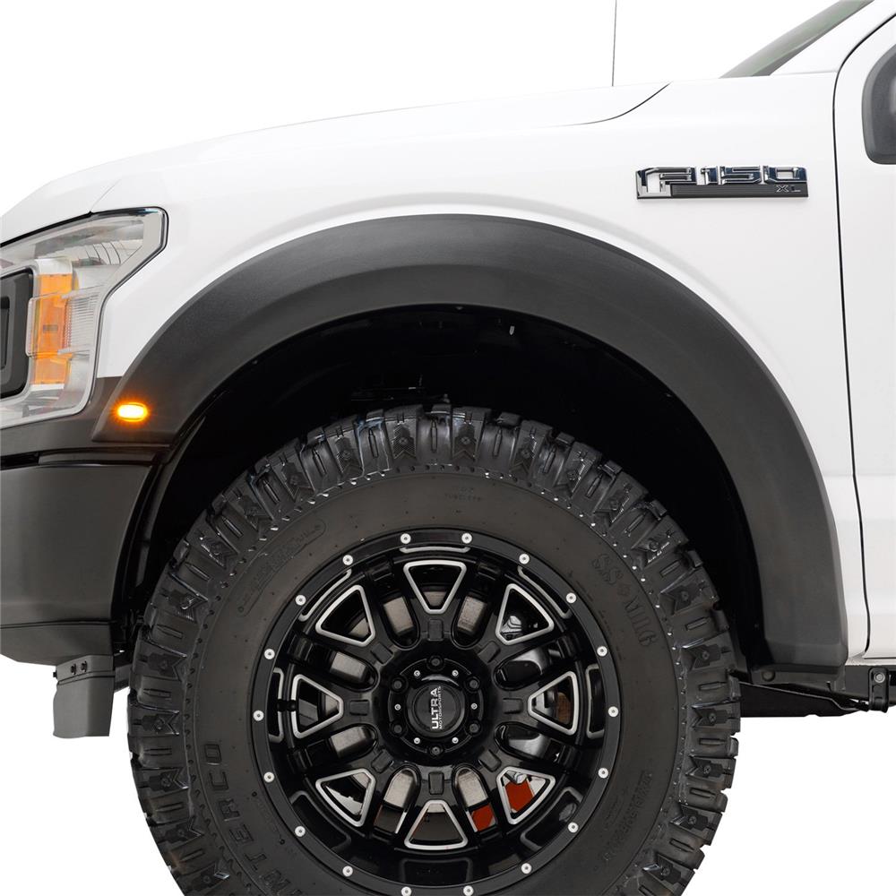 Raptor Style Fender Flares with LED Lights by TrailFX®. Fender Flares are form fitting, stylish and practical. TrailFX new lineup of fender flares are an easy to install accessory that will make a bold statement for your truck. Featuring TrailFX own Tri-Blend™ material, flares protect your vehicle, keeping it looking new year after year.