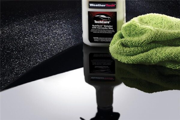 TechCare® QuikTech™ Detailer with Carnauba Wax by WeatherTech®. For Your Vehicle’s Exterior. WeatherTech® TechCare® QuikTech™ Detailer with Carnauba Wax is an exterior detailer safe for virtually all vehicle paint finishes that quickly enhances the shine on vehicles. QuikTech™Detailer is perfect for fast vehicle detail without the need for harsh abrasives. Made and packaged in the USA.