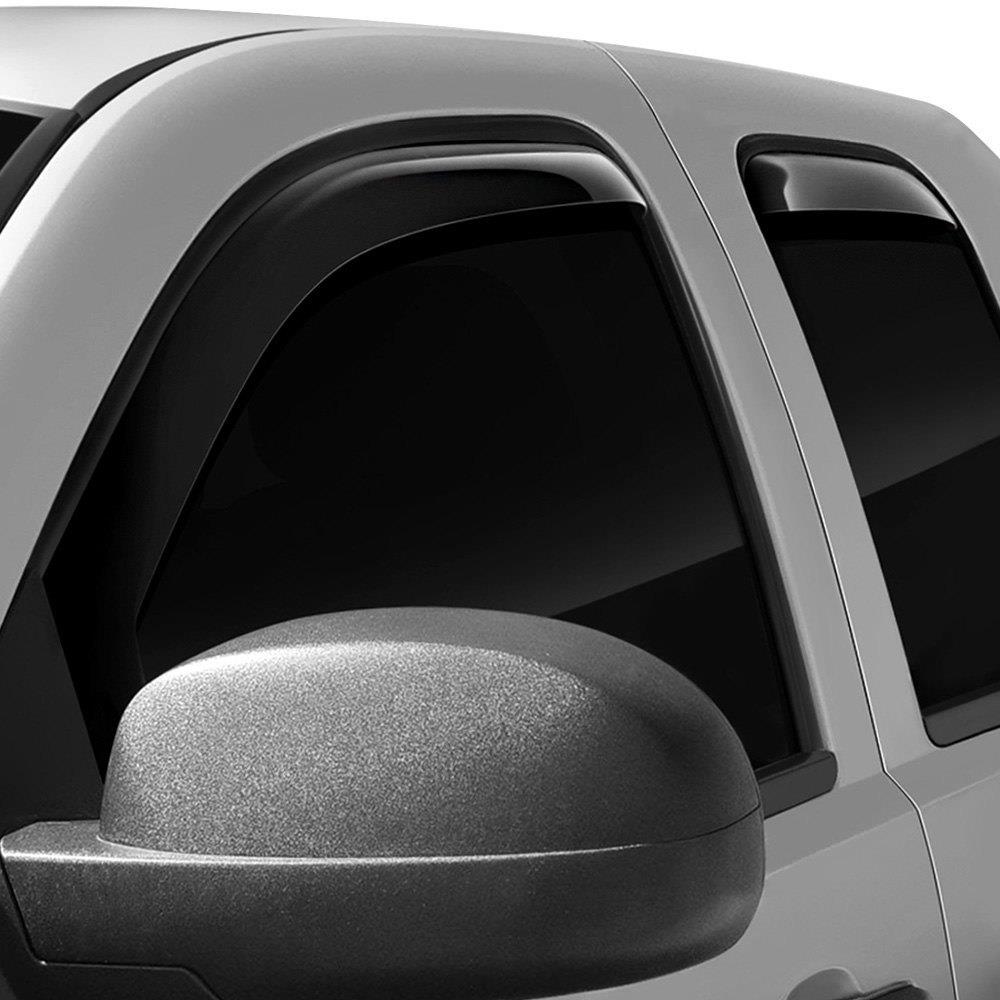 In-Channel Smoke Window Deflectors by Westin®. Westin In-Channel Wind Deflectors are a quick and quality solution to reducing wind, noise, heat, and glare without compromising the entry of fresh air when windows are rolled down slightly. They are easily installed by inserting the flanged edge into the window channel directly and secured with 3M automotive grade tape. Westin Wind Deflectors promote the circulation of fresh air while minimizing its volume and strength as it re-directs it up and into, or out of the vehicle. Their sleek design deflects wind and noise from entering the vehicle for a more pleasant ride any time of year. They are made from high-gloss smoke acrylic, and have transparency, so, visibility is never obstructed.
